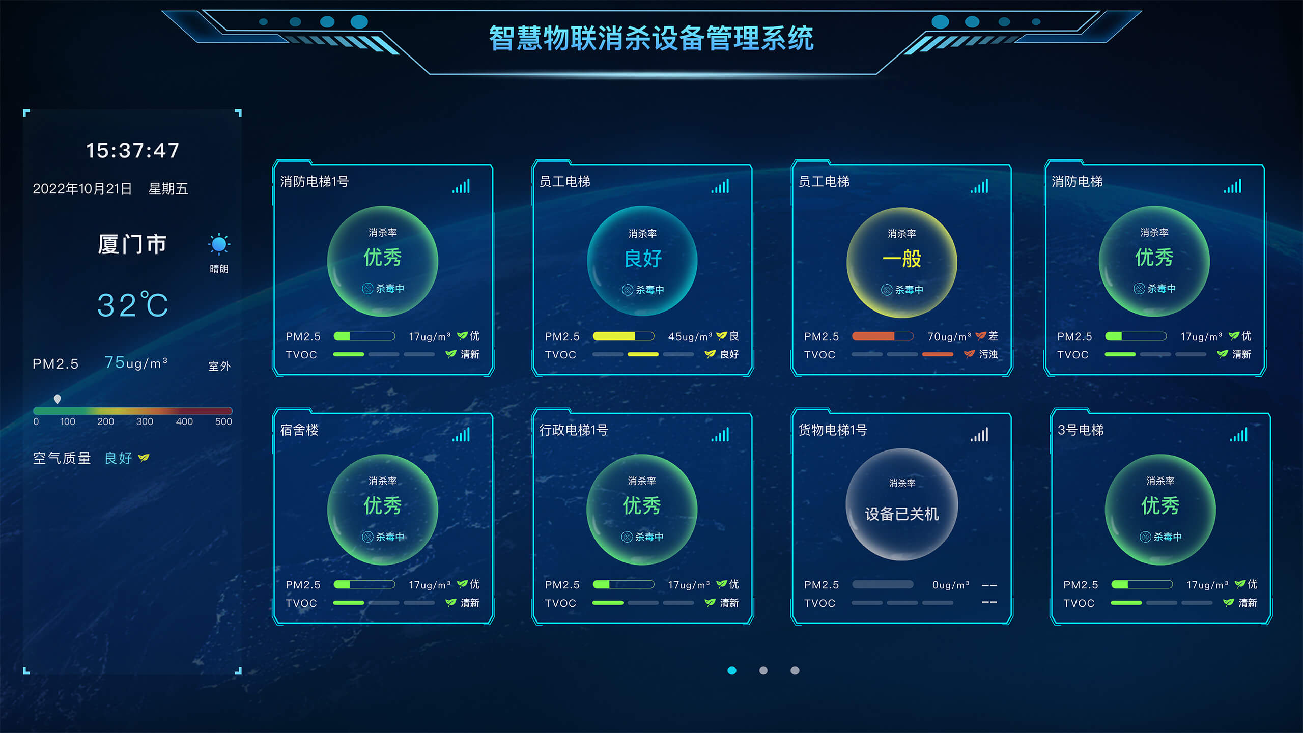 室内PM2.5、二氧化碳、空气质量等级等各类信息,在数据灵动可视化处理的BRI新风空净看板中一眼便知。